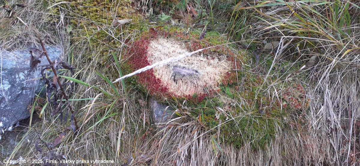 popis: Pri schádzani s rúbaniska na cestu.Traja autori...mach,kameň a kosačka.