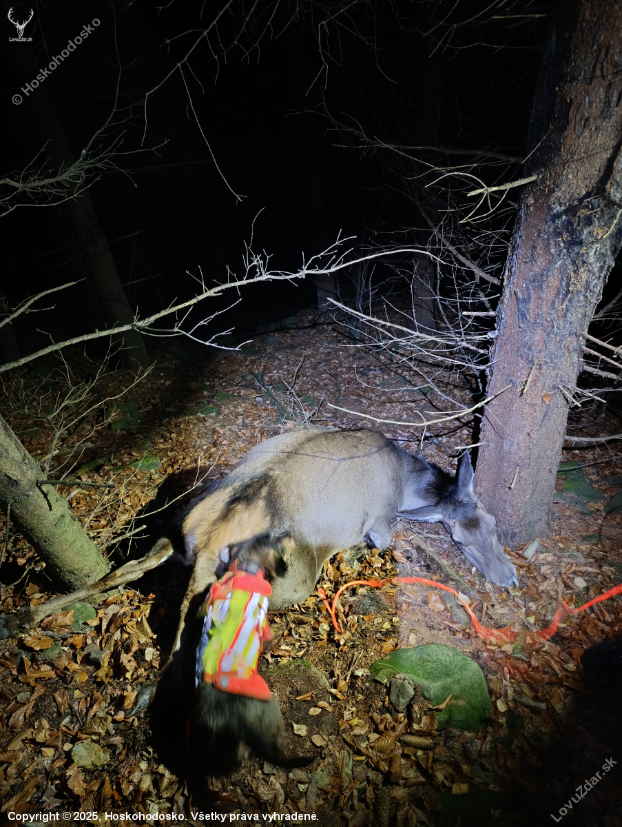 popis: Ďakujem Matesovi a jeho fenke Adri za dohľadavku, rána bola o niečo viac dozadu ku pečienke jelenica odbehla cca 200m nechcel som ísť za ňou až ju nepohnem ak by ešte žila tak som volal Matesovi ale dohľadavka rýchla do 5 min sme boli pr... zobraziť celý popis