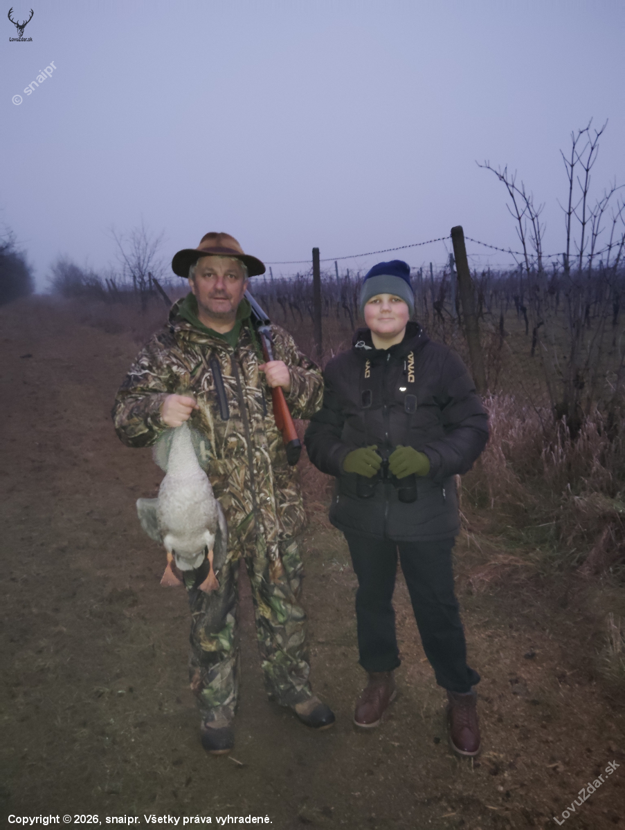 názov: Lov hus na tahu, se synem.