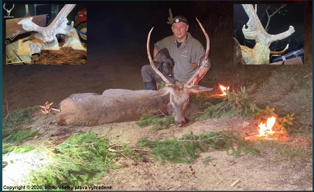 popis: Sezóna lovu zveri je v plnom prúde, už sa aj mne dačo pritrafilo uloviť. Ale v deň 22.10.25 som si povedal, skúsim ešte nejakú jelenicu. Tak som sa vybral do lokality Za Vrch, vedel som, že to tadiaľ prechádza. Tak som sa postavil na kraj...Sezóna lovu zveri je v plnom prúde, už sa aj mne dačo pritrafilo uloviť. Ale v deň 22.10.25 som si povedal, skúsim ešte nejakú jelenicu. Tak som sa vybral do lokality Za Vrch, vedel som, že to tadiaľ prechádza. Tak som sa postavil na kraj lesa a čakal, okolo mňa pobehovali zajačiky, bola radosť sa na ne pozerať a aj som zabudol, kvôli čomu som tam došiel. Behali tak blízko, že jeden do mňa skoro narazil. Pomaly sa začalo šeriť a z lesa vyšla vysoká. Vzdialenosť bola cez 300 m. Čakám ešte chvíľku, ktorým smerom sa rozhodne ísť. A podľa toho pôjdem domov alebo im nadbehnem. Diana a Hubert to asi tak chceli a šli nie úplne ku mne, ale povedal som si, nemám čo stratiť, buď ostanú alebo ujdú. Tak streleckú paličku do ruky, flintičku cez plece, Heidynu som nechal odloženú. Medzi nami bola terénna vlna, tak ja, kus chlapa s výškou 167 cm, som sa nemusel ani prikrčiť, veď žihľava bola vyššia ako ja. Ale boli časti, kde som sa veru musel už poriadne. Dostal som sa na ne tak na 70 m v poli. Opriem paličku, flintu do pozície štart a ďalekohľadom som ešte vedel čítať čriedu. Tretí v poradí bol on. Pozriem celu čriedu, bol tam ešte nejaký korunáč, ale ten ma nezaujímal. Ako rozprával už nebohý kamarát páan poľovník( Rudo-Findula.) to ťa musí udrieť do očí a v tedy vieš, že to je to správne, a mne sa také čosi stalo, udrelo ma to. Bol to nepravidelný šesťorák, na ľavom kmeni len asi 4 cm operák a druhá strana nič, len nadočnik. Ale je tam veľké ALE, ktoré som nevidel a ani nevedel, že to tam je. Je rozhodnuté, odistím. Ale jeleň stál nie v dobrej pozícii. Priznám sa, ulakomil som sa na krk, potiahnem spúšť, pááác. Jeleň ostáva v ohni. Neprebíjam, len sa pozerám v ďalekohľade, otočím sa na Heidy v diaľke a v uchu počujem buchot, pozriem smerom na jelene a jeleň beží smerom jemne ku mne. Spadne, postaví sa, pár krokov pobeží, spadne, postaví sa a beží, prebijem, mierim z paličky, ale nedalo sa mi s ňou, brzdil ma pohyb v otáčaní, paličku hádžem na zem a z voľnej ruky strieľam na lopatku a jeleň ostáva ležať presne na poľnej ceste. Ale to som už prebil a čakal pár minút, ale už len chvostíkom vládal triasť. Vydýchnem si, ani som k nemu nešiel. Vrátil som sa, kde som sedel s Heidy, nasadáme do auta a ideme k jeleňovi, medzi tým volám hospodárovi (Juro10), že čo a ako som vykonal. To už prichádzam k jeleňovi. Keď som už začal obzerať hlavu, veľmi ma to buchlo do očí ešte viac, jeleň RARITA, očník sploštený ako keď ho dáte na zem a klepnete kladivom, ale to nebolo všetko, zo zadnej strany mu vyrastal výrastok široký, taký hák. No priznám sa, ani opísať sa to nedá, len treba vidieť. Po poľovníckej eufórii som znovu volal s hospodárom, poslal foto. Že nádhera. Volal som aj synovi, nech zoberie auto, a aj susedovi Jurovi, či nepríde pomôcť, tak nakoniec on zobral aj vlečku, aj auto, aj syna. Ja som medzi tým založil plombu podľa pravidiel, zapísal do povelenky aby som nebol za pytliaka. Kým všetci prišli, jeleňa som obriadil a pripravil si výrad tak, ako to mám ja rád. Tak, ako si to kráľ, ale aj iná zver zaslúži. Preto si to zaslúži, lebo ona nechcela zomrieť, ale my sme to chceli. V ten večer mi Diana a Hubert dopriali krásneho raritneho jeleňa prvej vekovej triedy. Ďakujem tým, ktorí mi pomohli. Lovu zdar, priatelia zobraziť celý popis