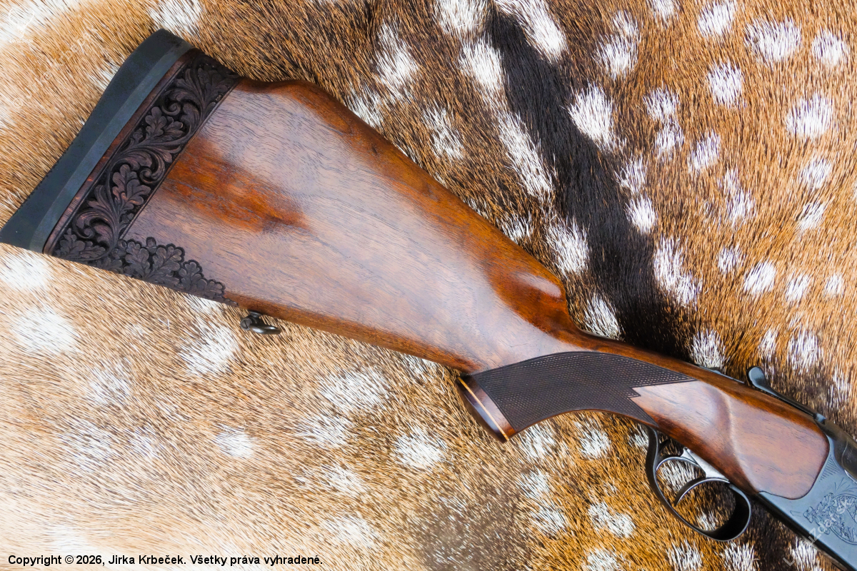 popis: Prodloužení pažby - spoj maskován řezbou - poškození pažby na spodní straně u poutka - taktéž maskováno řezbou. Nová povrchová úprava a rybiny .