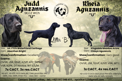 Obaja rodičia majú vynikajúce zdravotné výsledky, vyrovnané povahy a sú aktívni v rôznych oblastiach s výbornými predkami. Očakávame, že šteniatka zdedia ich energiu, vlohy a vyrovnaný temperament.